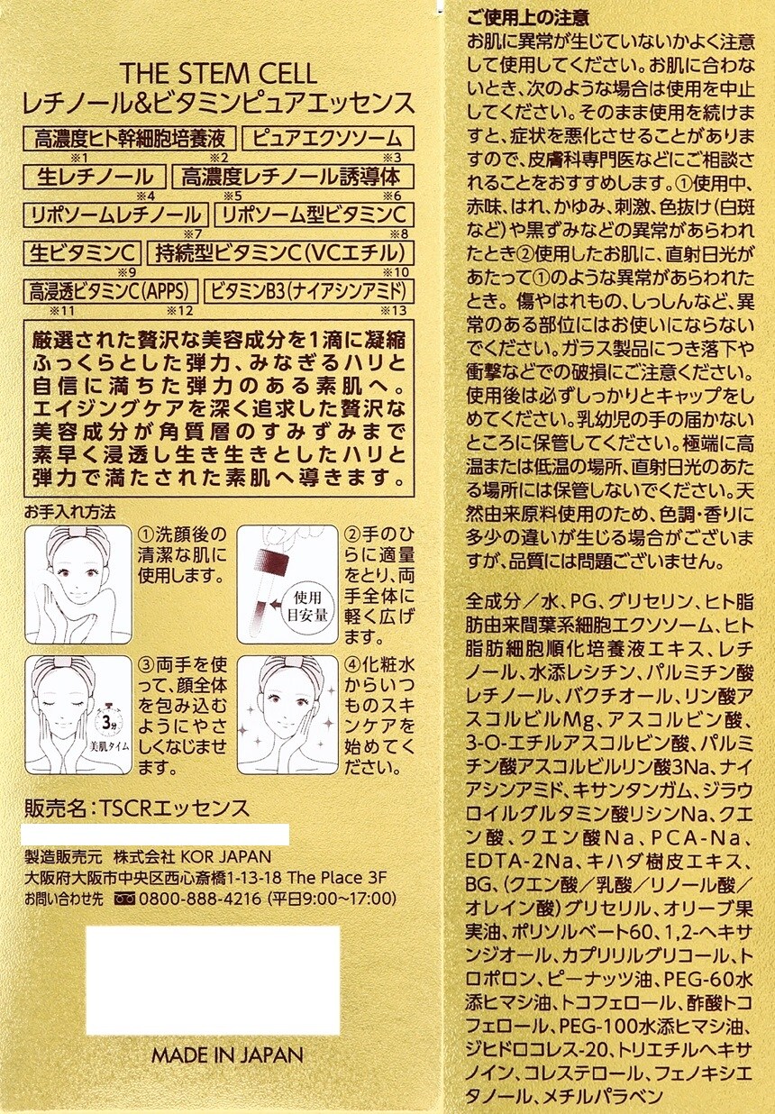 [3本] KOR JAPAN THE STEM CELL RETINOL&VITAMIN PURE ESSENCE 55ml | 大人気シリーズ「THE STEM CELL」に美容液が新登場!