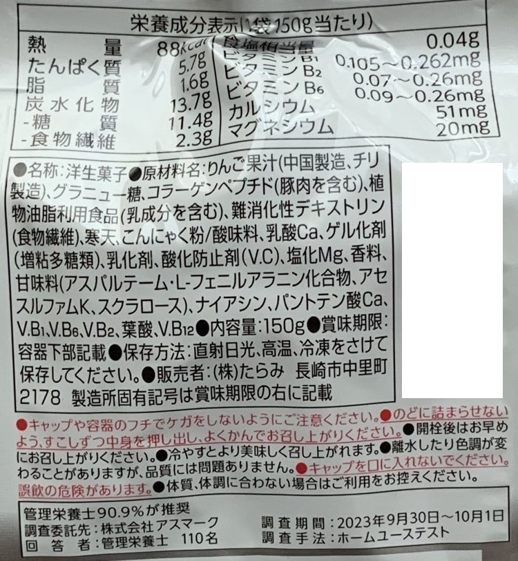 アレルギー表示:乳・豚肉・りんご