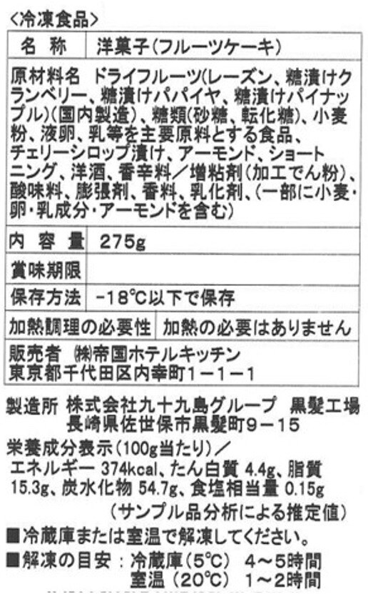 - 帝国ホテルキッチン フルーツケーキ 275g