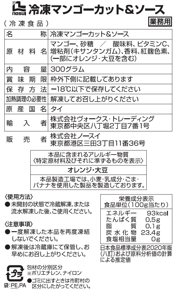 [10袋]ノースイ 冷凍マンゴーカット&ソース 300g | 果肉はオレンジ色の鮮やかな発色があり、甘味も強く清爽感のある味わい
