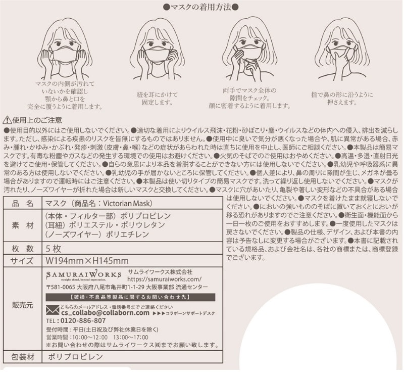 【VictorianMask 4層 女性用 ヌーディベージュ×ブラウンベージュ 5枚入】