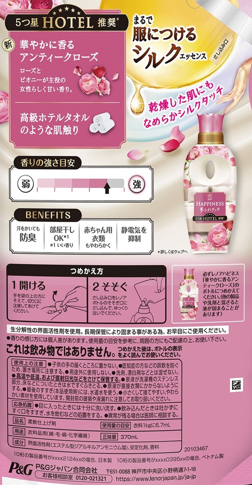 - レノア ハピネス 夢ふわタッチ 柔軟剤 華やかに香るアンティークローズ 詰め替え 370ml