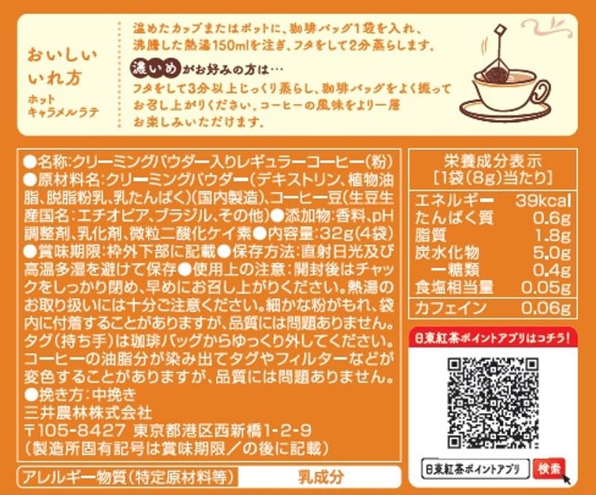 ・日東紅茶 ミルクとけだす珈琲バッグ キャラメルラテ 4杯×6個 - 賞味期限