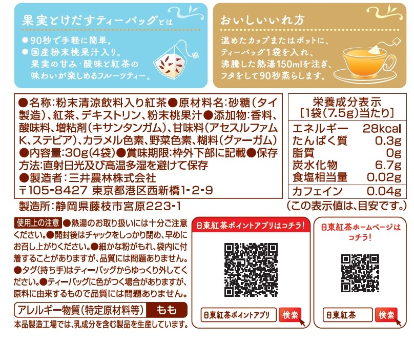 - 日東紅茶 果実とけだすティーバッグ ピーチティー 4杯