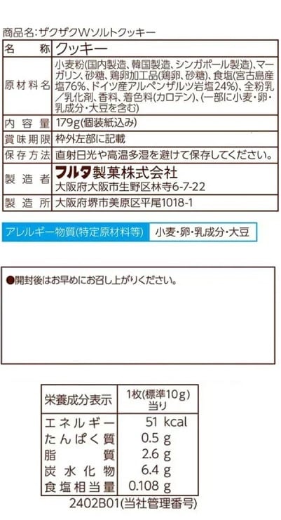 - ザクザクWソルトクッキー 179g