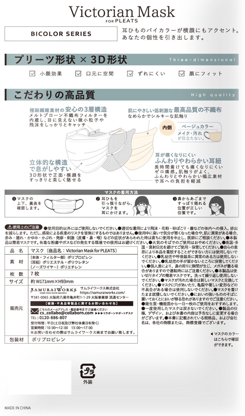 [計175枚]サムライワークス Victorian Mask for PLEATS レディース Mサイズ キャラメル×ブラック 7枚入 | プリーツマスクと立体マスクを掛け合わせたハイブリット形状