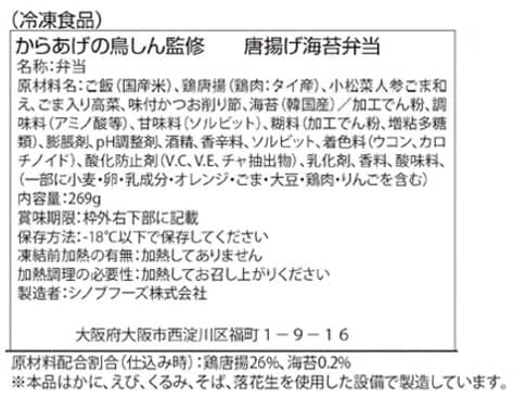 - Delcy からあげの鳥しん監修 唐揚げ海苔弁当 269g