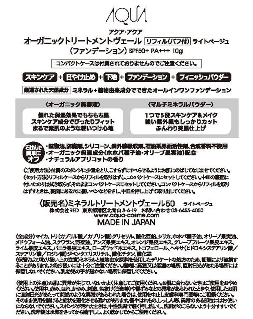 - アクア・アクア ミネラルトリートメントヴェール50 リフィル ライトベージュ 10g(パフ付き) ※リニューアル前商品