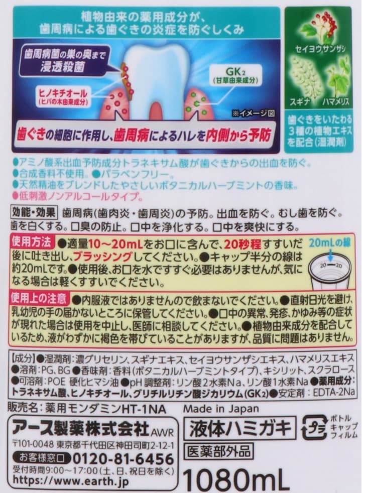 [8個]【医薬部外品】アース製薬 モンダミン NEXT 歯ぐきケア センシティブ 1080mL | 歯周病による炎症を歯ぐきの内側から予防