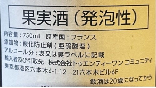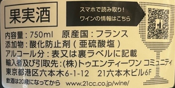 原材料:ブドウ、酸化防止剤(亜硫酸塩)