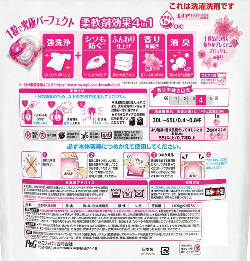 [4袋]P&Gジャパン合同会社 ボールド 洗濯洗剤 ジェルボール 4in1 プレミアムブロッサム つめかえ 超メガジャンボ 92個入 | 1粒で究極パーフェクト
