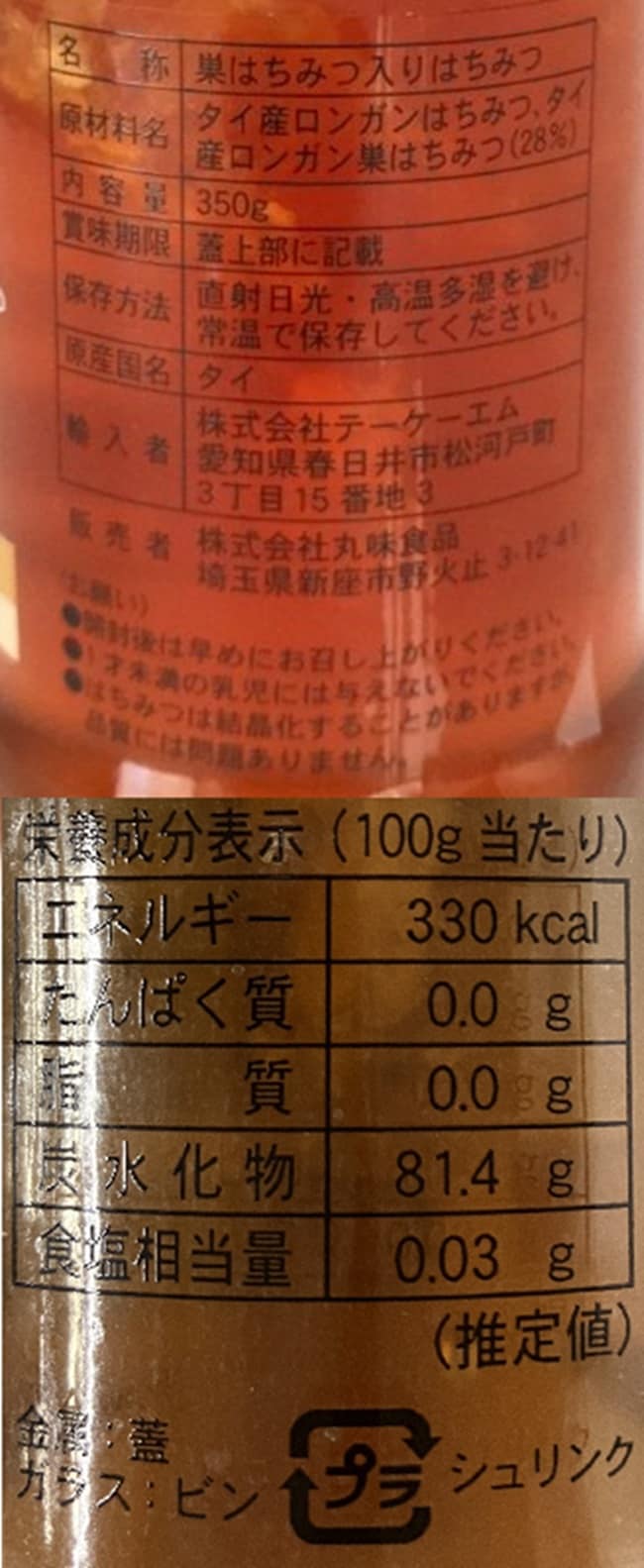 [3個]丸味食品 ロンガン蜂蜜(巣蜜入り) 350g | 秘境の地で出会った究極のはちみつ。超希少なロンガンの花100%にこだわった濃厚でおいしい巣蜜入りのはちみつ。