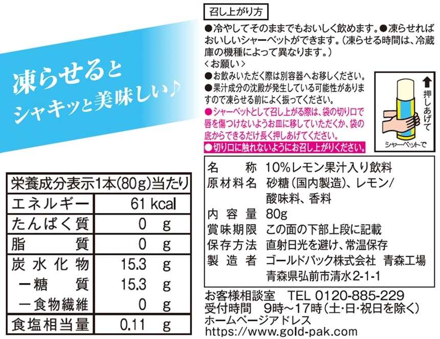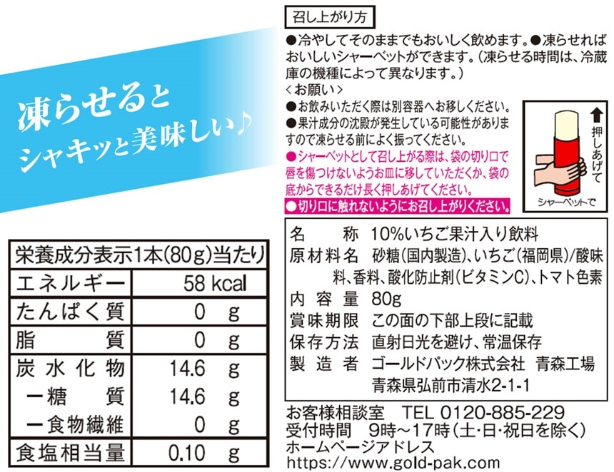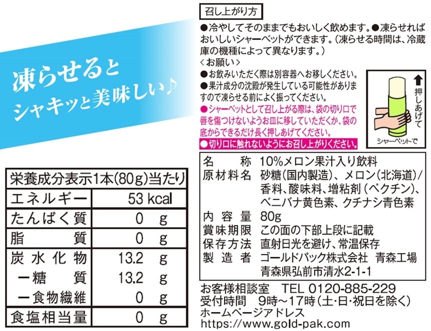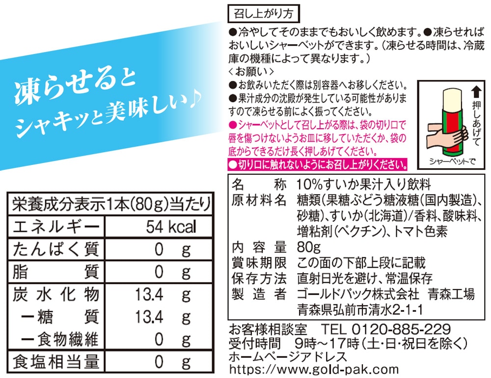 ハンディータイプの形状で、そのまま凍らせれば片手で押し出しながら、いつでもどこでもお手軽に召し上がれます。