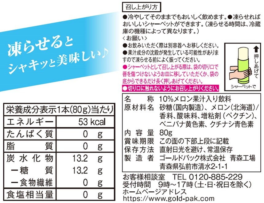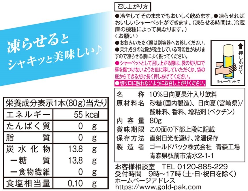 [2種計40本]ゴールドパック NIPPONフルーツバー 北海道メロン 80g / 宮崎日向夏 80g | 特産果実の美味しさを、手軽に美味しく