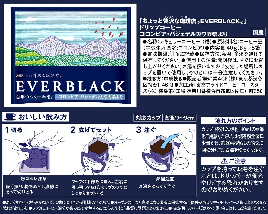 - ・「ちょっと贅沢な珈琲店ⓇEVERBLACKⓇ」ドリップコーヒー コロンビア・バジェデルカウカ県より (8g×5杯入)×6箱