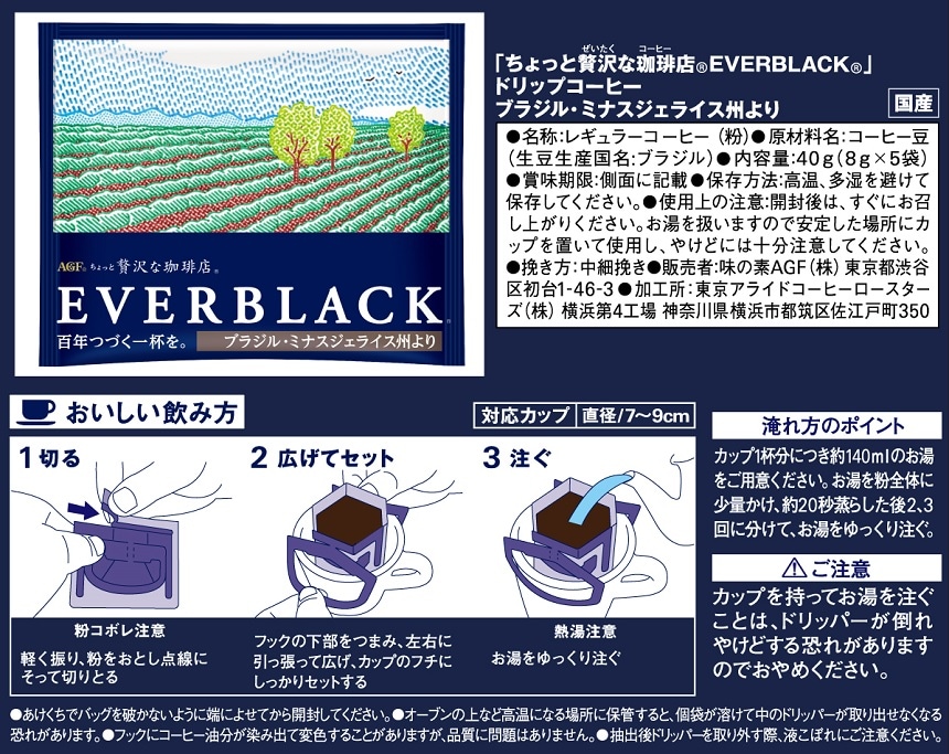 ・「ちょっと贅沢な珈琲店ⓇEVERBLACKⓇ」ドリップコーヒー ブラジル・ミナスジェライス州より (8g×5杯入)×6箱