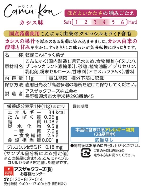 [40袋]アスザックフーズ かむこんカシス味 11g | 蒟蒻に味付けをした素材を感じるおやつ。