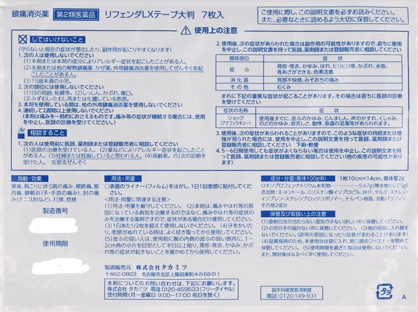 [3袋]【第2類医薬品】タカミツ リフェンダLXテープ大判 7枚 | 腰痛、肩の痛み、関節痛に