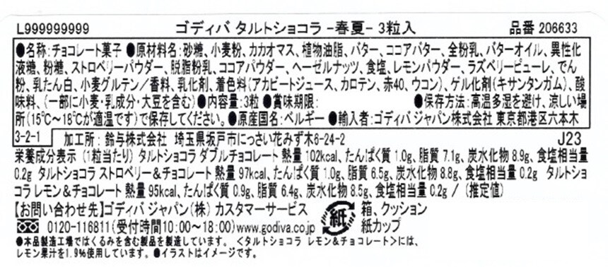 - ゴディバ タルトショコラ -春夏- 3粒入
