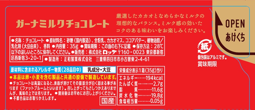 幅広い年代のお客様に愛されているガーナミルクチョコレートを是非、お楽しみください。