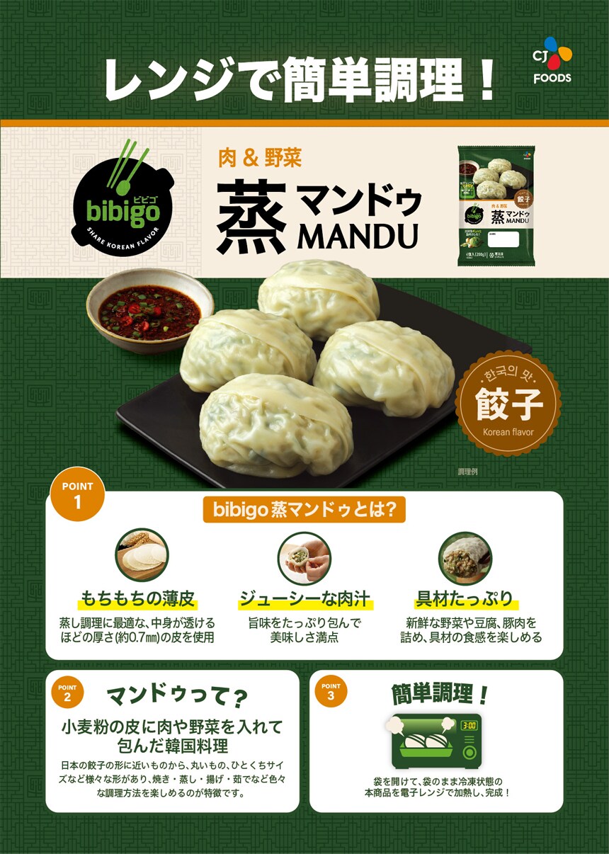 [24個]CJ FOODS JAPAN bibigo蒸マンドゥ 200g | 電子レンジ調理で超簡単!調理時に油を使わないため、ヘルシーで、ボリューム満点!