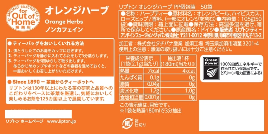 - リプトン オレンジハーブ PP個包装ティーバッグ 50袋入