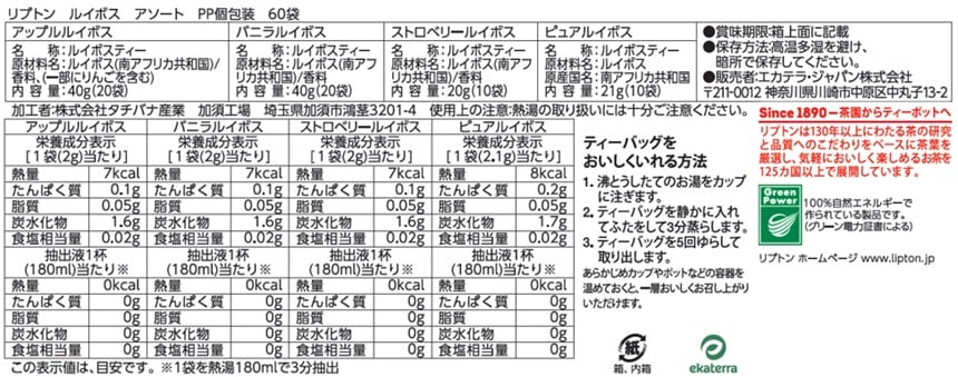 - リプトン ルイボスティーアソート PP個包装ティーバッグ 60袋入
