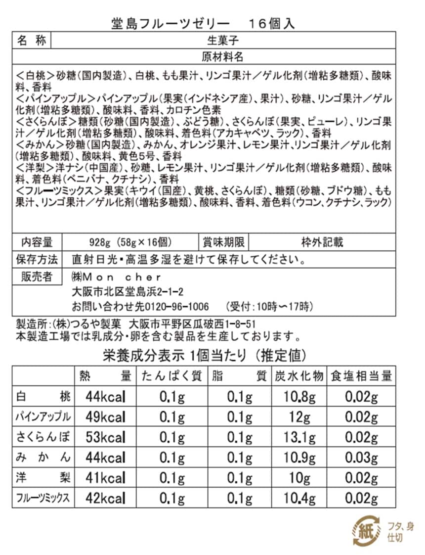 [2箱]Mon cher 堂島フルーツゼリー 16個入り | さわやかな果汁を使ったゼリーに色とりどりの果実をギュッととじ込めました