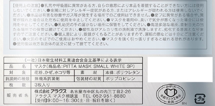 【PITTA MASK(ピッタマスク) スモール ホワイト】