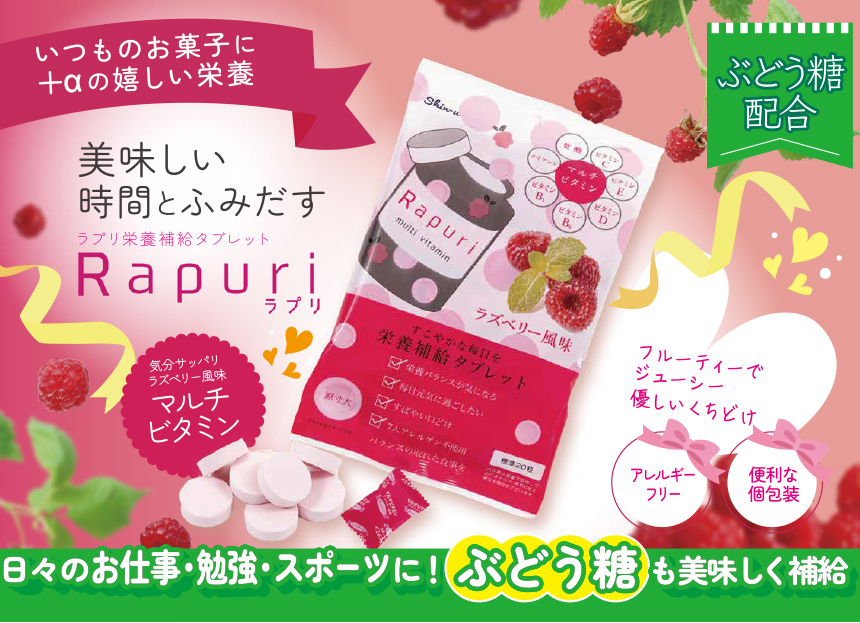 [48袋]シンユー ラプリ 栄養補給タブレット マルチビタミン ラズベリー風味 60g