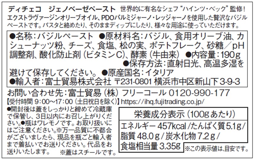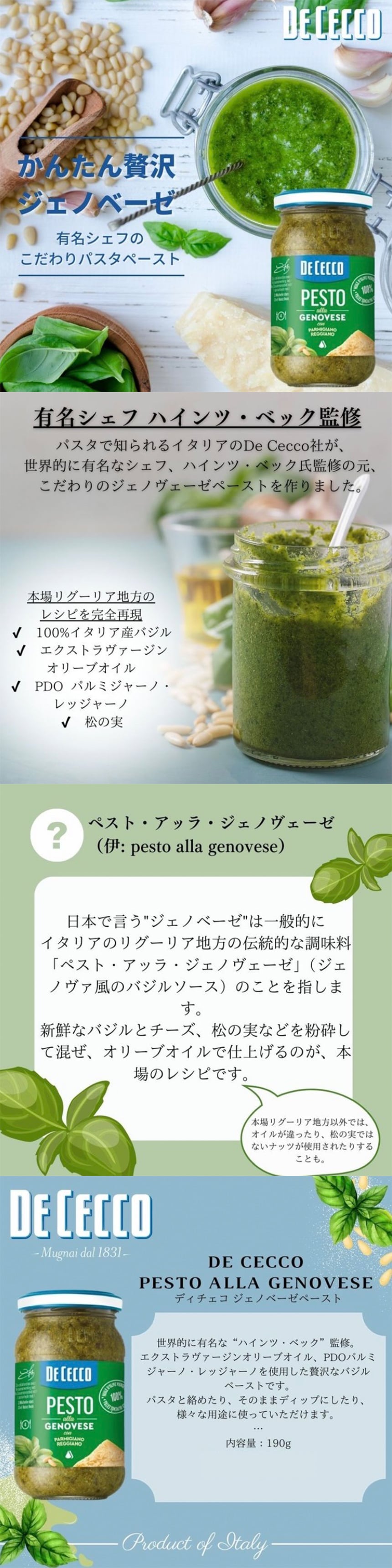 [12個]富士貿易 ディチェコ ジェノベーゼペースト 190g | エクストラヴァージンオリーブオイル、PDOパルミジャーノ・レッジャーノを使用した贅沢なバジルペーストです。