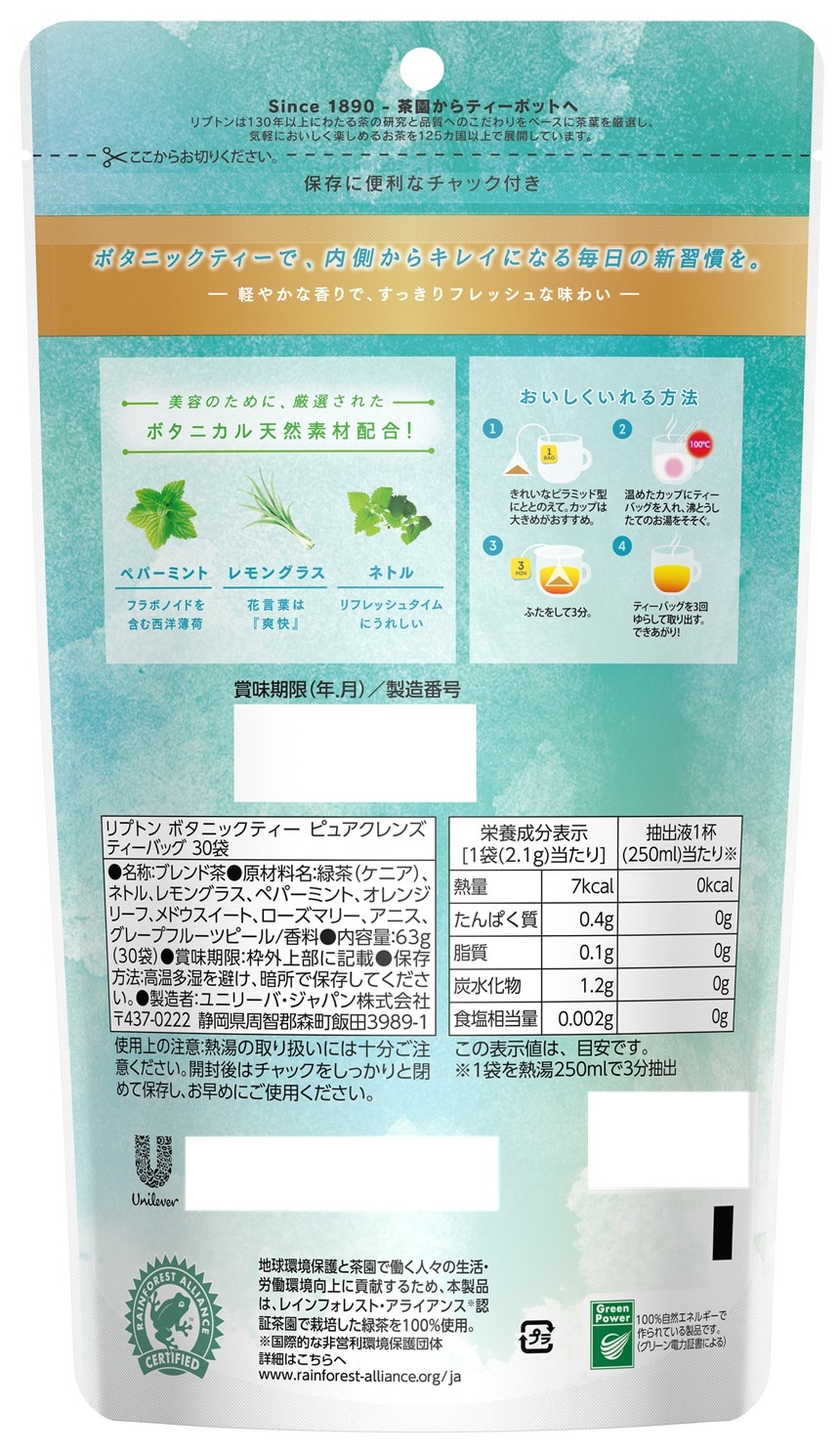 【リプトン ボタニックティー ピュアクレンズ ティーバッグ 30袋】