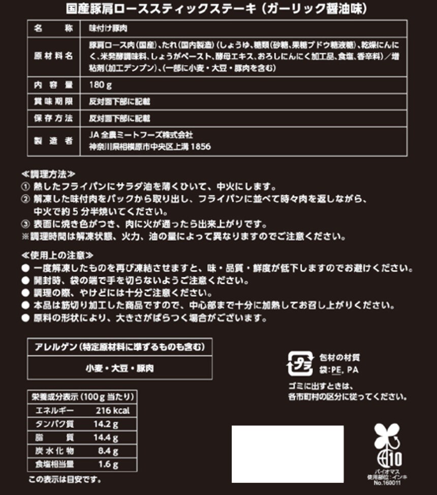 [20袋]JA全農ミートフーズ 国産豚肩ローススティックステーキ (ガーリック醤油味) 180g | 炒めるだけの簡単調理!ガーリック醤油がクセになるスティックステーキ!