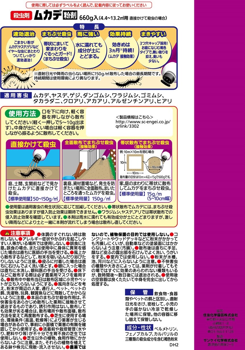 [5本]住友化学園芸 ムカデ粉剤 660g | ムカデ退治に効きめ3カ月、家のまわりにまいて通ったムカデをまちぶせ殺虫。
