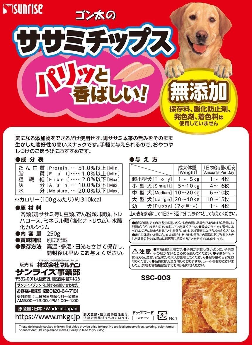 [4個]マルカン・サンライズ事業部 ゴン太のササミチップス 250g | パリッと香ばしいササミスナック!