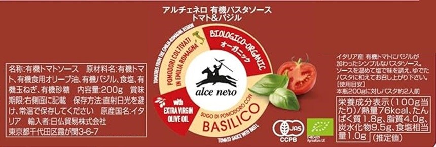 イタリア産有機トマトにバジルが加わったシンプルなパスタソース。