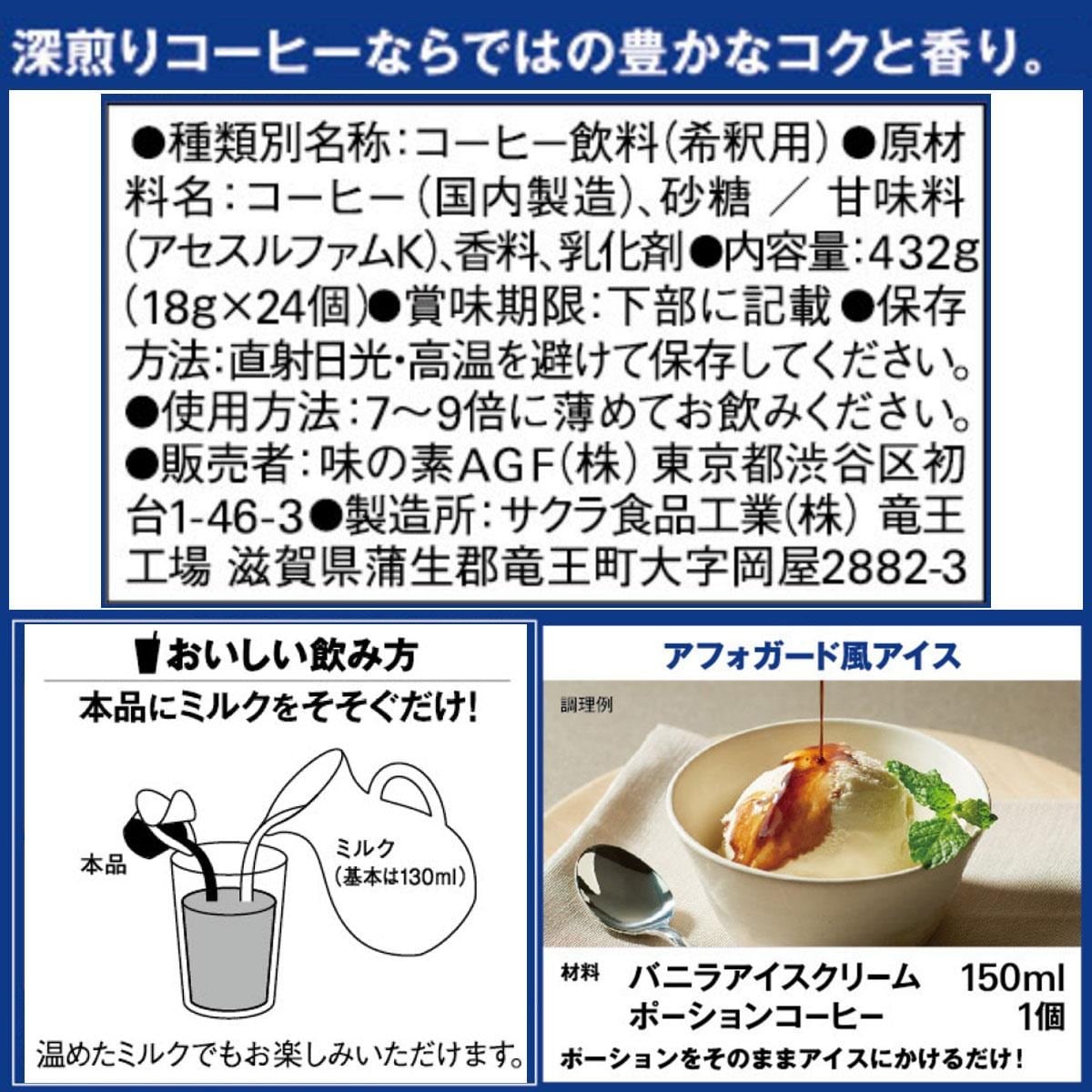 [計144杯]味の素AGF 「ブレンディⓇ」ポーション 濃縮コーヒー 甘さひかえめ 24個入×6袋 | 深煎りコーヒーならではの豊かなコクと香り、甘さひかえめのポーションコーヒー