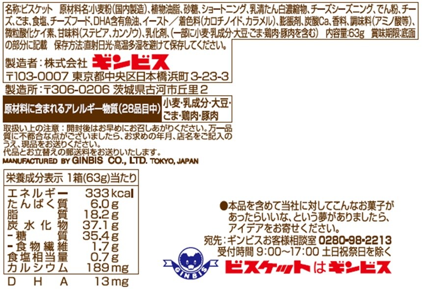 [60個]ギンビス たべっ子どうぶつ こだわりのチーズ味 63g | 5種類のチーズを使用した味わい深いビスケット ※卵不使用