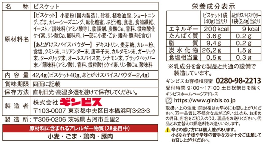 [40個]ギンビス あとがけパウダー付きミニアスパラガスビスケット スパイスカレー味 42.4g | あとがけスパイスパウダーをかけてお好みの辛さで楽しめる ※卵不使用