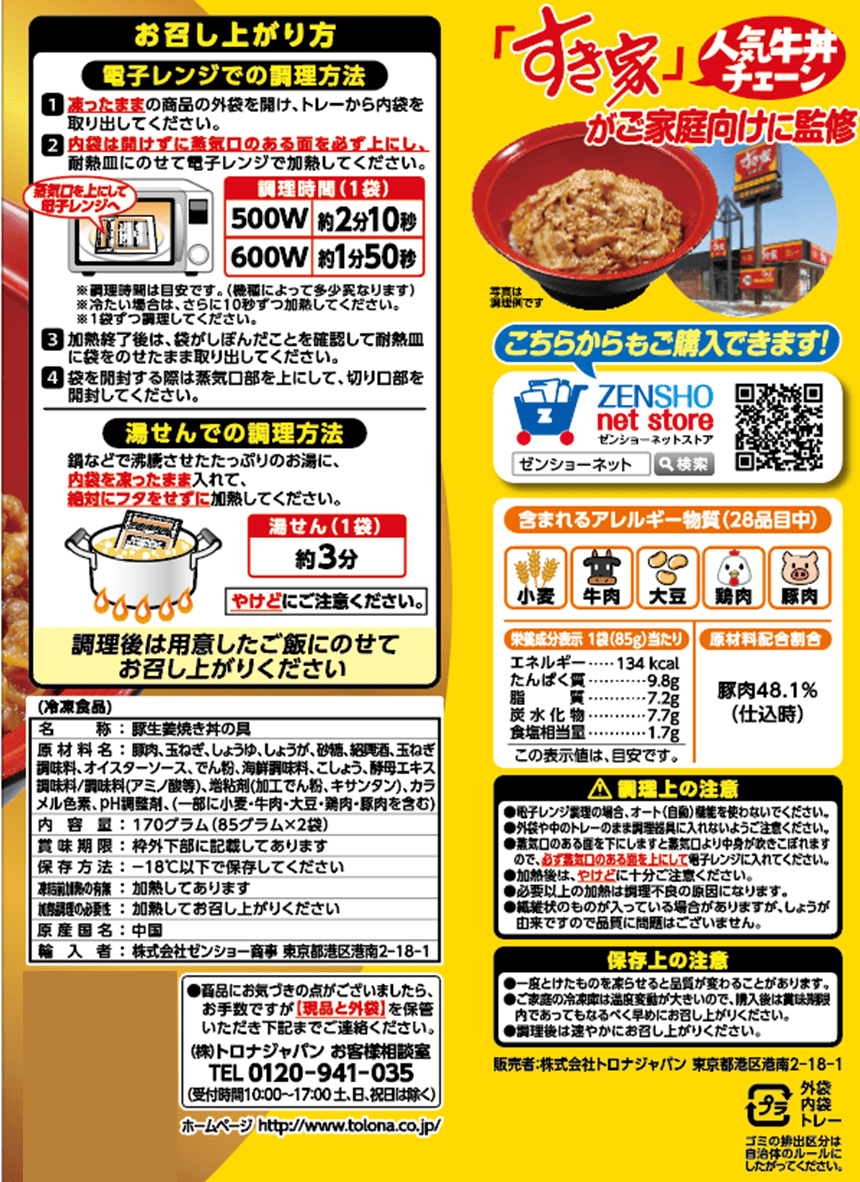 [計40食]トロナジャパン すき家 豚生姜焼き丼の具 85g×2食入×20個 | 「すき家」の味がご家庭でも簡単便利に楽しめます。