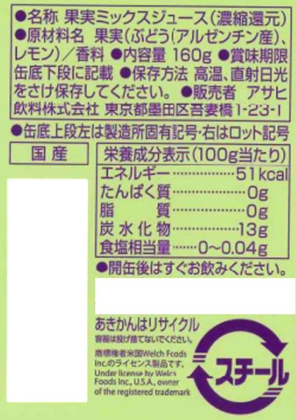 ・Welch's ホワイトグレープ&レモン 160g×3本 - 賞味期限