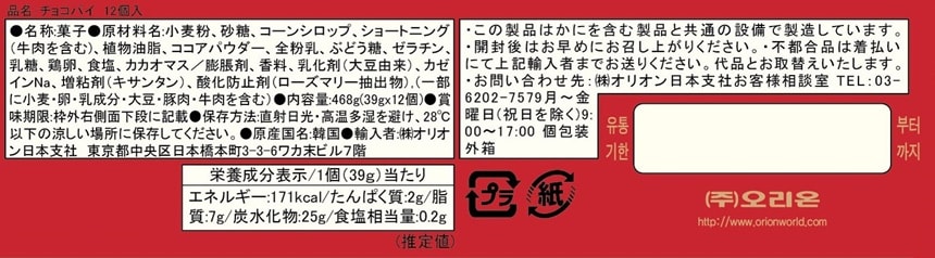 [4箱]オリオン チョコパイ 情 468g(39g×12個入) | 韓国旅行のお土産としておなじみのチョコパイ情