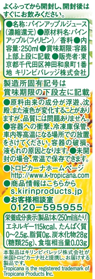 【トロピカーナ 100% パインアップル】