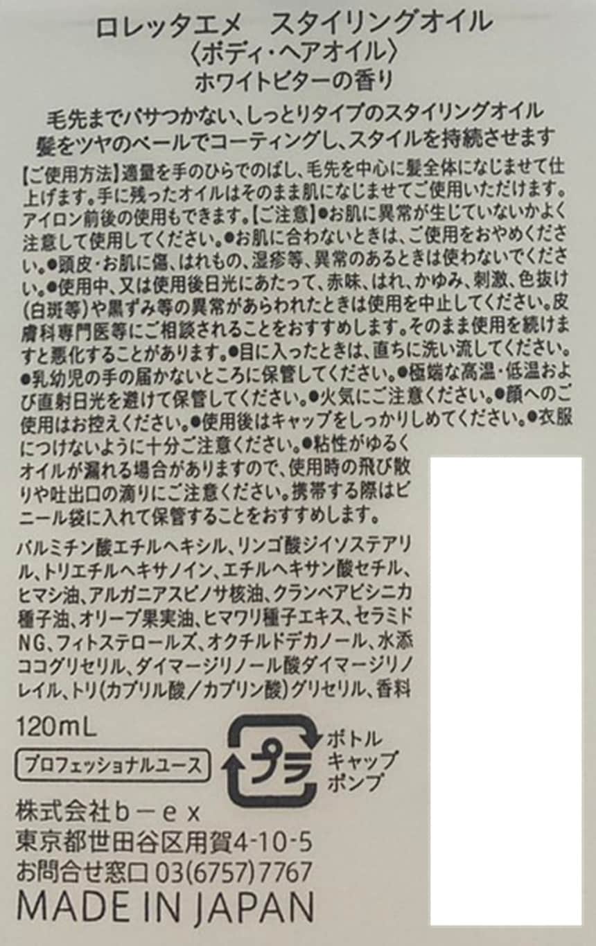 【初回限定】[1個]b-ex LORETTA AIMER ロレッタエメ スタイリングオイル 120mL | 毛先までパサつかないしっとりタイプのスタイリングオイル。アイロン前後の使用でスタイルを持続