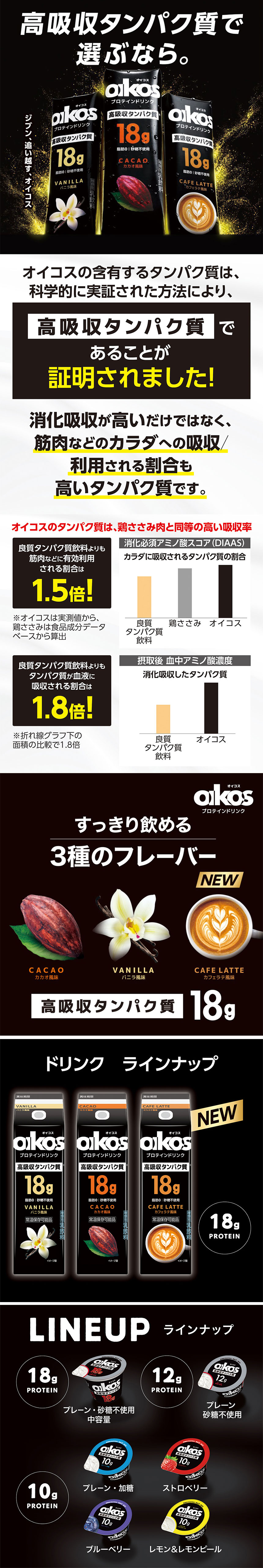 1.OIKOSドリンクは乳飲料のプロテインドリンクで、手軽に動物性のタンパク質を摂取できます。