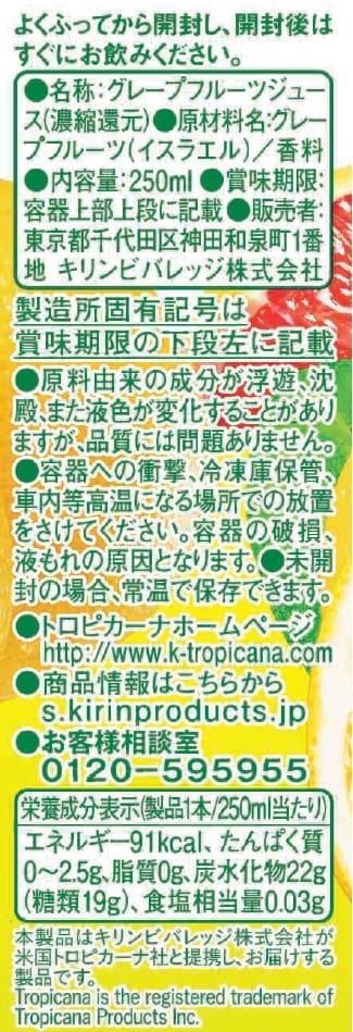 [96本]キリンビバレッジ トロピカーナ 100% グレープフルーツ 250ml