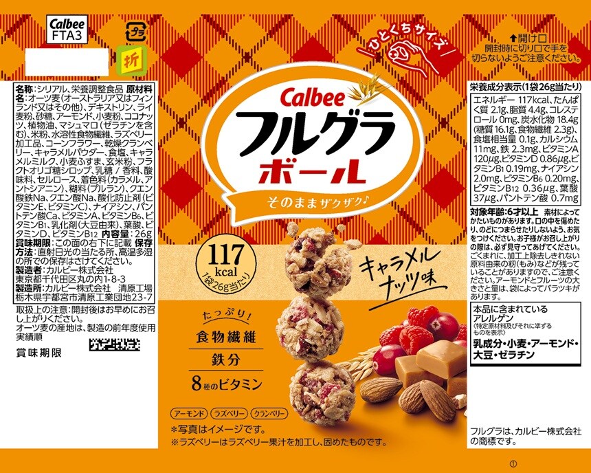 - カルビーフルグラボール キャラメルナッツ味 26g