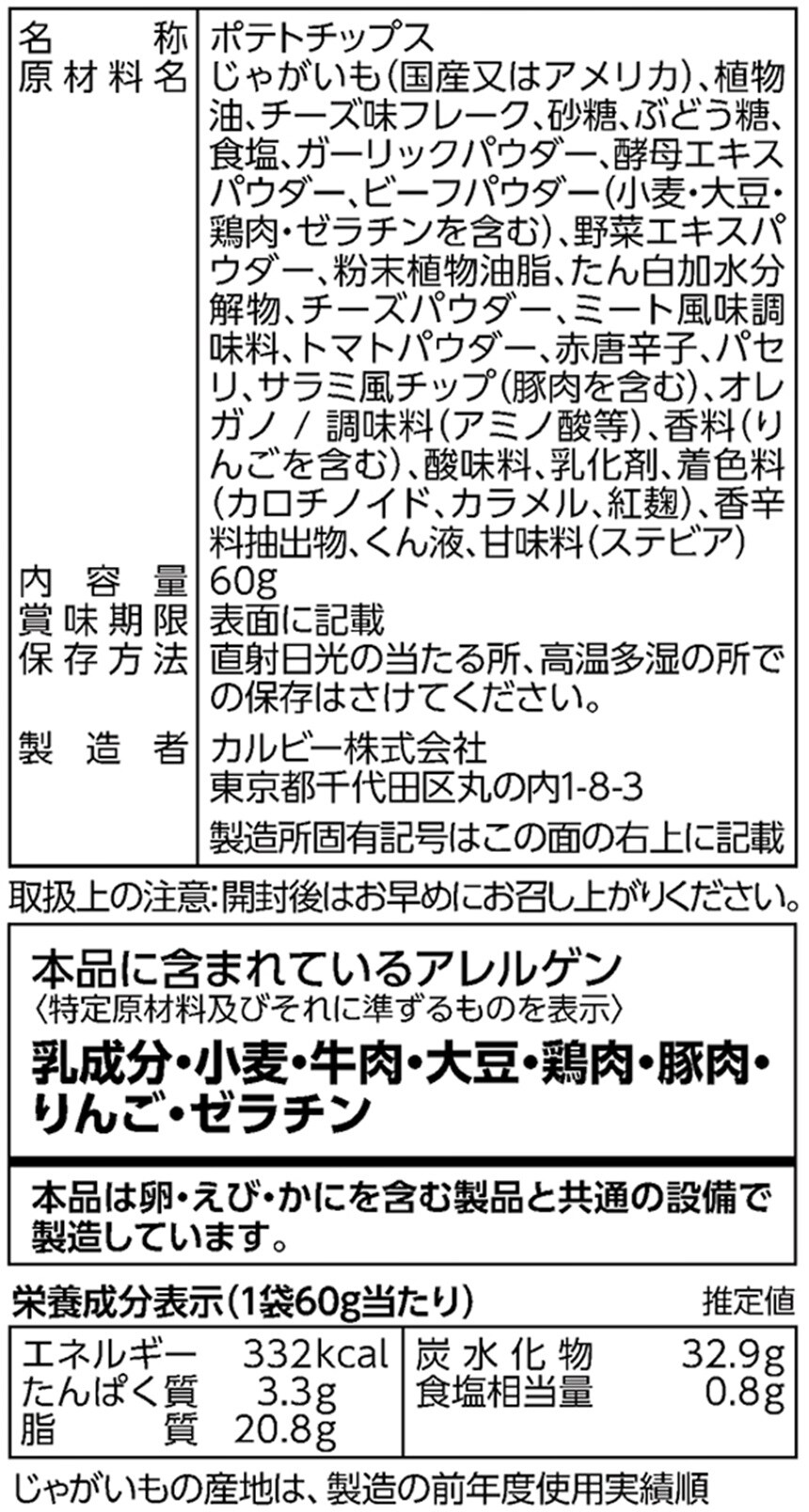 風味豊かなチーズの味わいと、ミート・トマト・スパイスが織りなす複雑な味わいがくせになる、満足感たっぷりのポテトチップスです。
