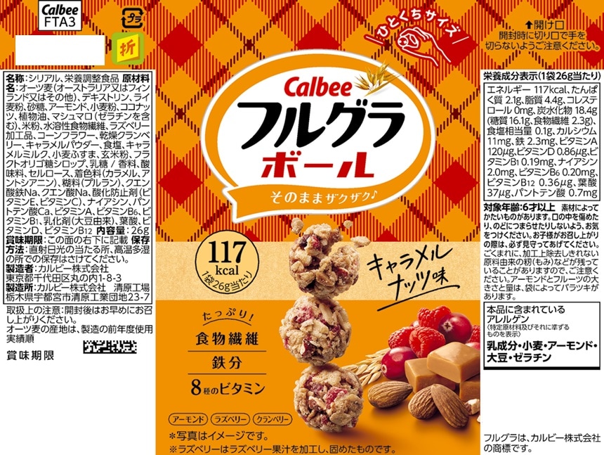 - カルビー フルグラボール キャラメルナッツ味 26g