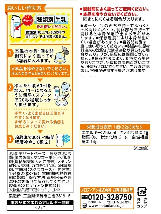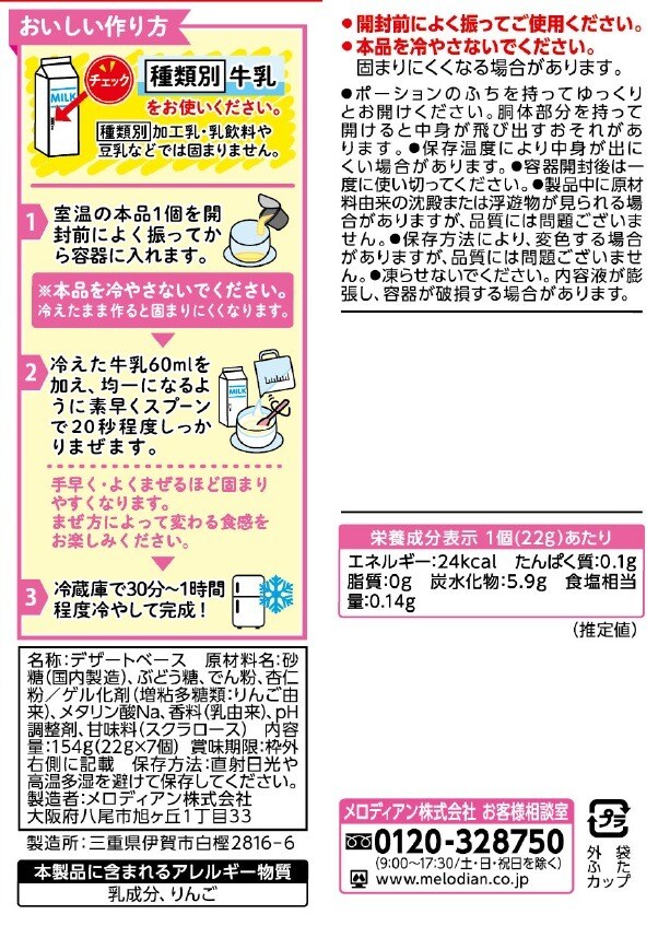 牛乳に1ポーション混ぜるだけで、簡単に個食のデザートが作れます。